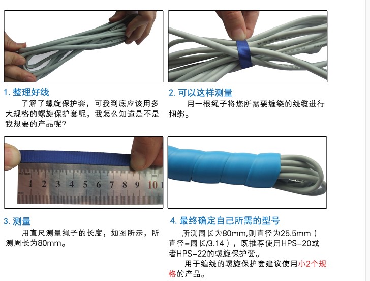 好多新客戶購買螺旋保護套的時候都不知道該如何選擇,在這我給大家介紹兩種選購方法。