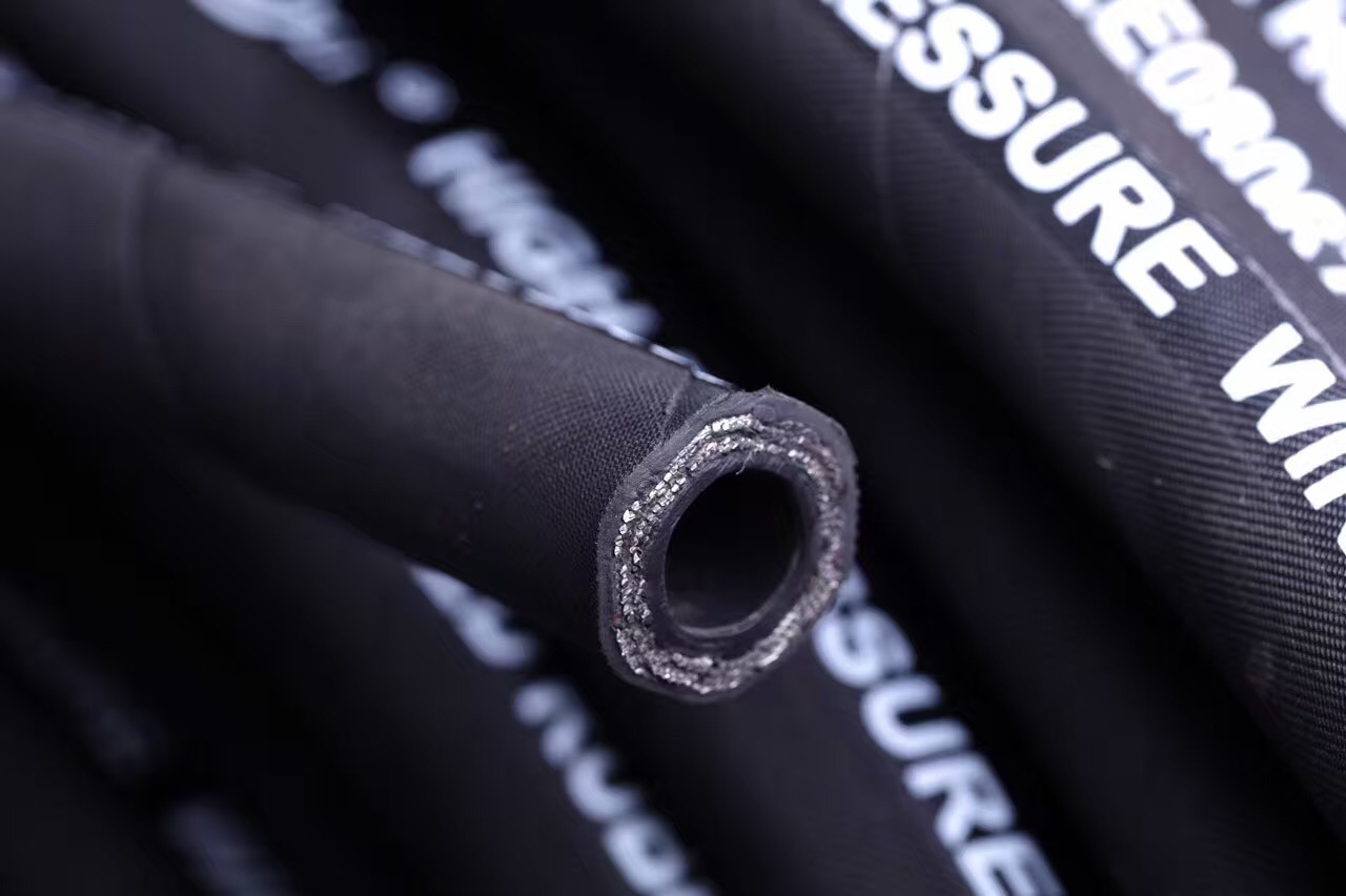 3、膠管破裂,破口附近編織鋼絲生銹。若高壓油管破裂,剝去外膠層檢查發現破口附近編織、纏繞鋼絲有生銹現象,這主要是由于外膠層潮濕或腐蝕性物質的作用,削弱了膠管強度,致使高壓時破裂。