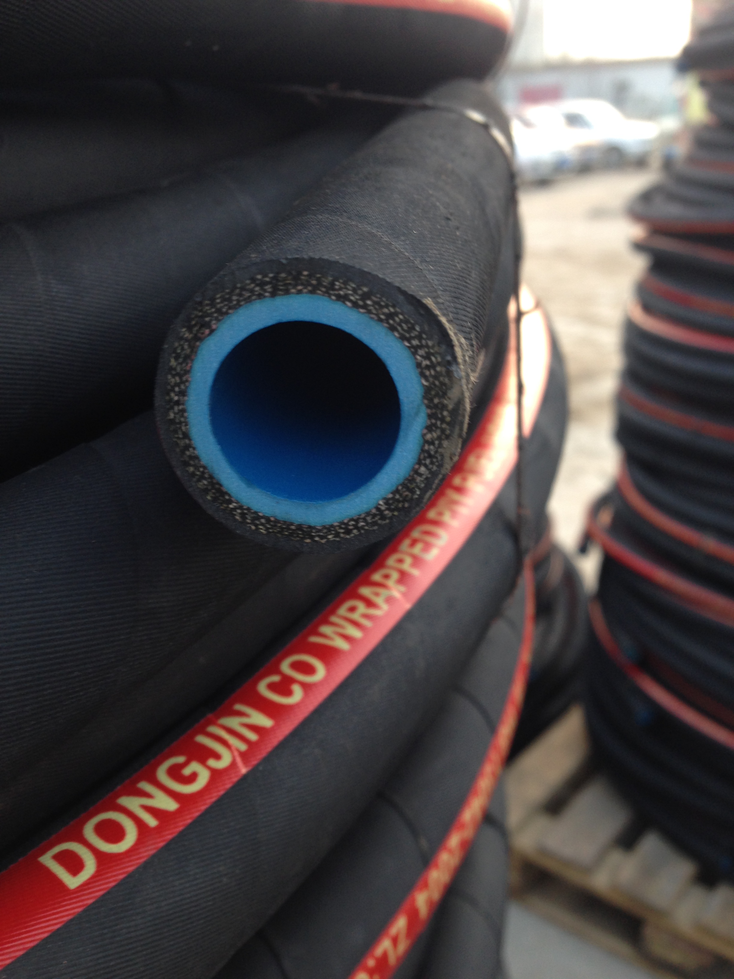 夾布膠管,由內膠層,多層夾布編織或纏繞層、外膠層組成, 夾布吸引膠管是由內膠層,多層夾布纏繞層,螺旋鋼絲增強層和外膠層組成。